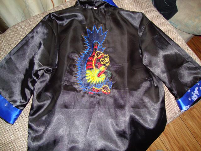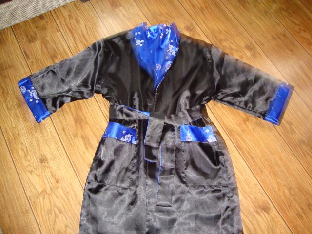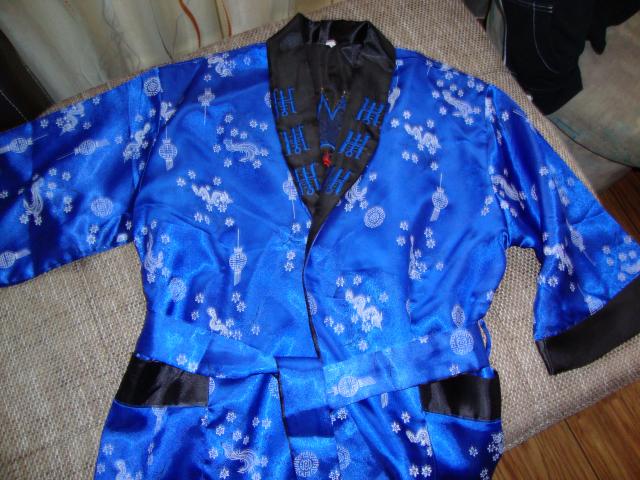 Nerialaus grozio ir kokybes tailandietiskas chalatas,simpatiskas.Iki kelieniu.Ryskus begalo fainas chalaciukas,apynaujis.Galima vilketi is abieju pusiu,tai foto matosi.Klauskite ismatavimus atsiusiu.Rankovytes 3/4.Matosi foto.TIK PARDAVIMAS-NEMAINAU.Kainyte su siuntimu jau galutine 70lt.Nera plonas