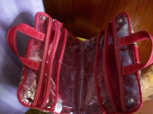Talpi kosmetine, labai puikiai tinkanti einant i dusa susideti visus daiktus, nes yra apsauga nuo dregmes. Taip pat patogu kelioneje.Yra 6 skyreliai. Ismatavimai 20X27
