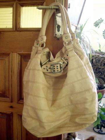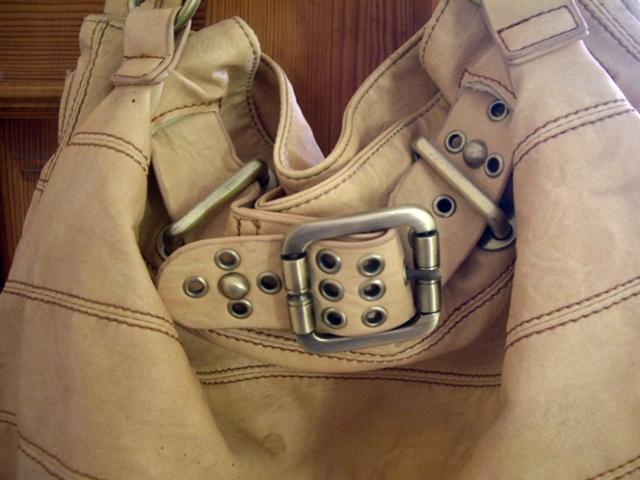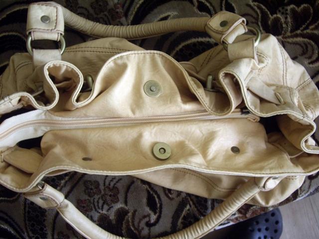 Smėlio spalvos, talpi odinė rankinė. Vienas didelis ir trys maži skyriai viduje. Mažai nešiota.