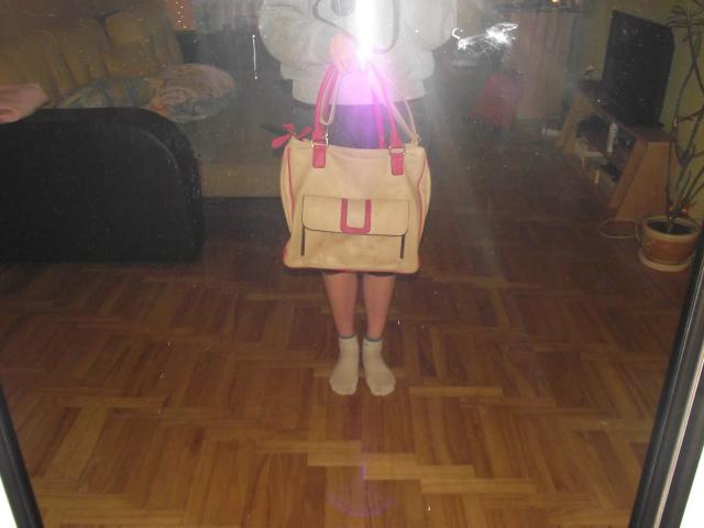 Tikrai puiki rankinė, talpi, tinka įsimesti knygoms. Yra rankenos, taip pat papildomai prisegamas dirželis, kurio ilgį galima reguliuoti. Trijų didelių skyrių, viduje yra dar smulkesnių skyrelių. Rankinės gale užtrauktuku atsegamas mažas skyrelis, priekyje - didesnis, su magnetuku. Mažytis minusiukas tas, kad priekyje žymelė lyg nuo nuluptos etiketės likę ''klijai'', garbės žodis nerėžia akies. jei reikia daugiau foto -sakykit