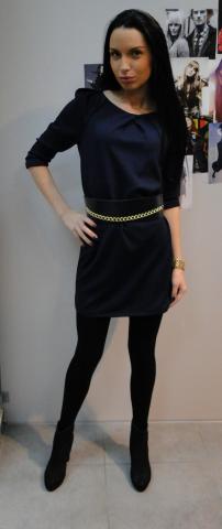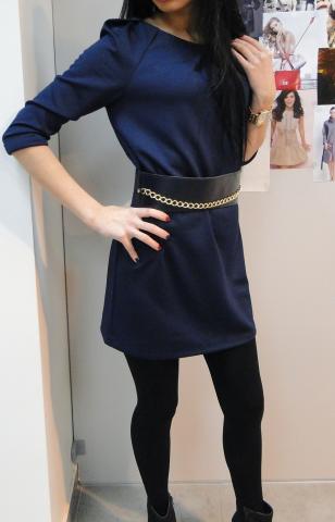Tamsiai melyna klasika su placiu dirzu. Suknele tinka M,L dydziams