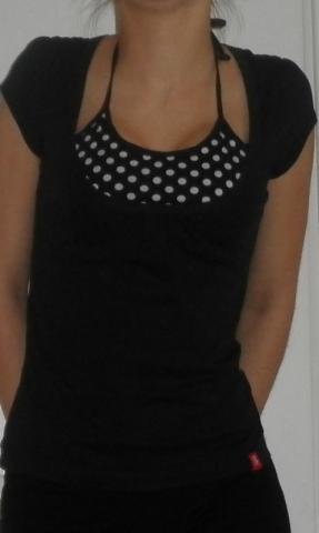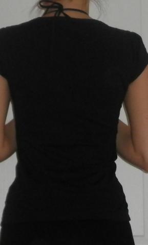 tamsiai mėlyna, nugaroje ties kaklu susiriša.