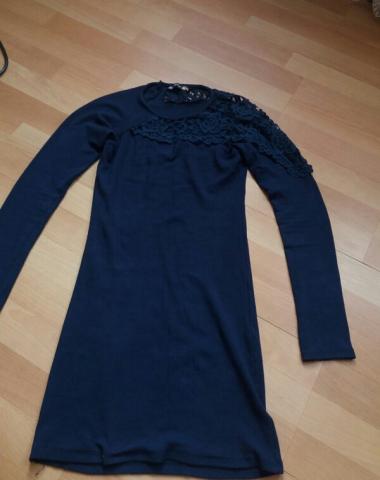 Tamsiai mėlyna prigludusi vakarinė suknelė