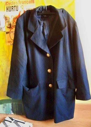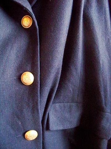 tamsiai mėlynas vintage paltas auksinėm sagom