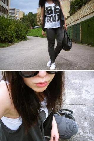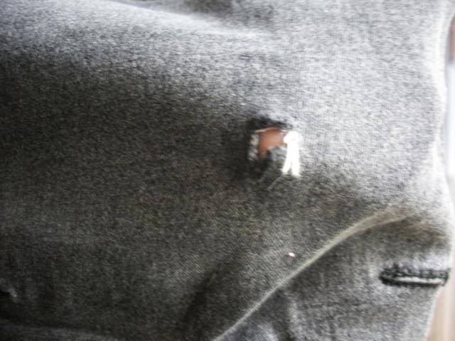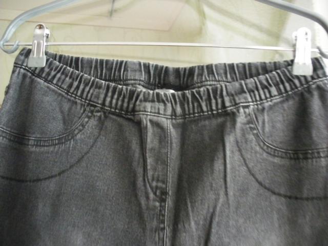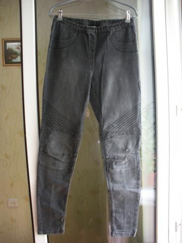 Labai gražūs, tamsiai pilki džinsai su baikeriškom detalėm (siuvinėjimai). Yra labai nedidelis defektukas, maža skylutė ant kelio, bet labai lengvai galima tai susitvarkyti : )