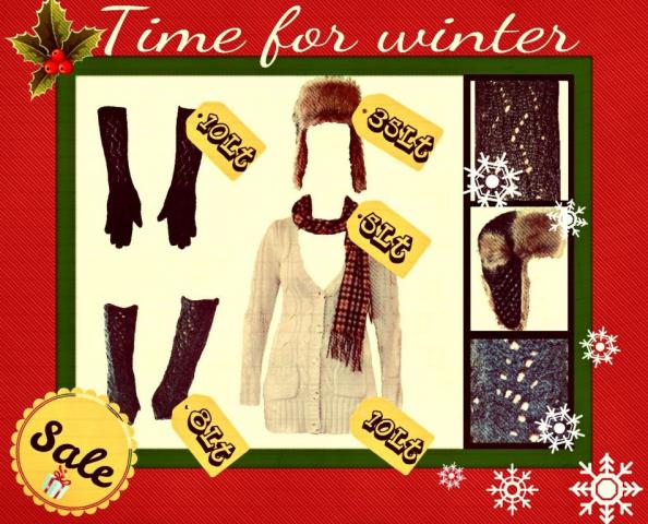 Tamsiai rudos megztos pirštinės / pilkos megztos rankovės / kailinė kepurė / šalikas / megztinis