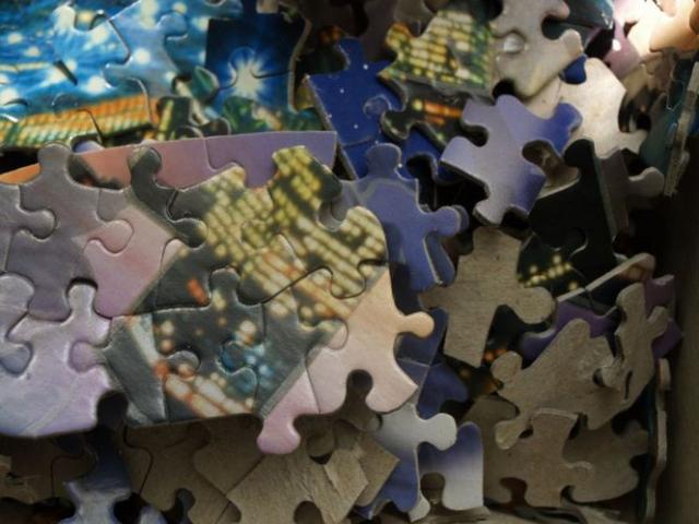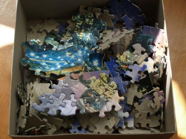 Tamsoje šviečianti apvali puzlė.