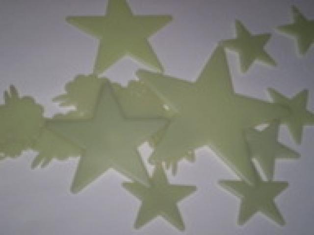 žvaigždės ir avys, kurios tamsoje šviečia.