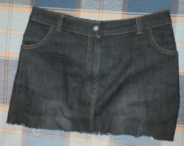 Džinsinis, trumpas, tamsus, nukirpta apačia. :) Su lycra, apsitempia.