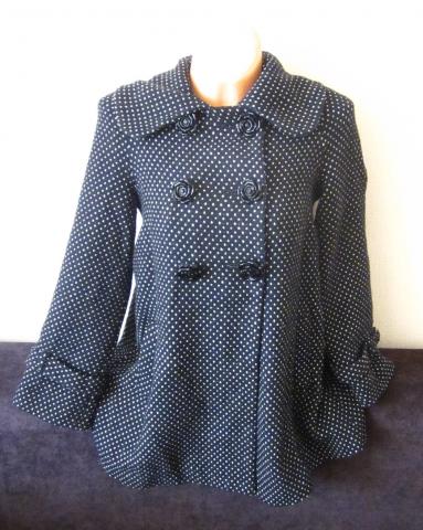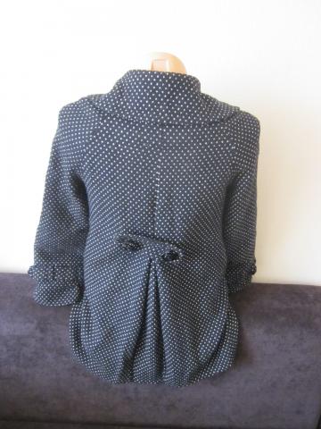 Tamsus paltukas, dydis 10 (38). Pasiburbulavęs, reikėtų tvarkyti. Vienoje vietoje apačioje atsiardęs pamušalas (4 nuotrauka). Ilgis nugaroje 77 cm, krūtinės apimtis 48x2 cm, rankovės ilgis nuo pažasties 44 cm