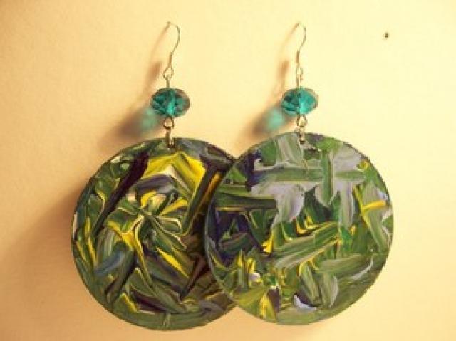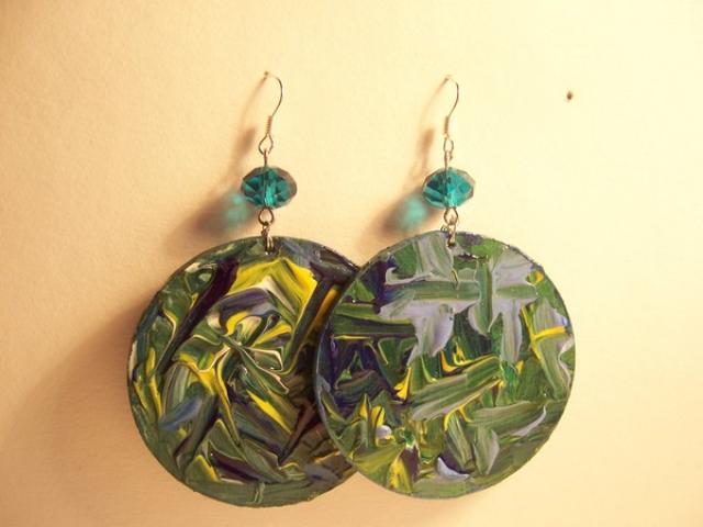 auskarai tvirti, rankų darbo. Galiu padaryti bet kokios spalvos. Šie irgi parduodami. Dydis: (6.5 cm)