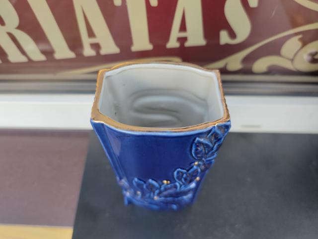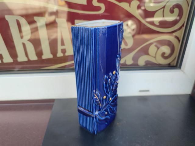Tarybinė porcelianinė mėlyno kobalto spalvos vaza.