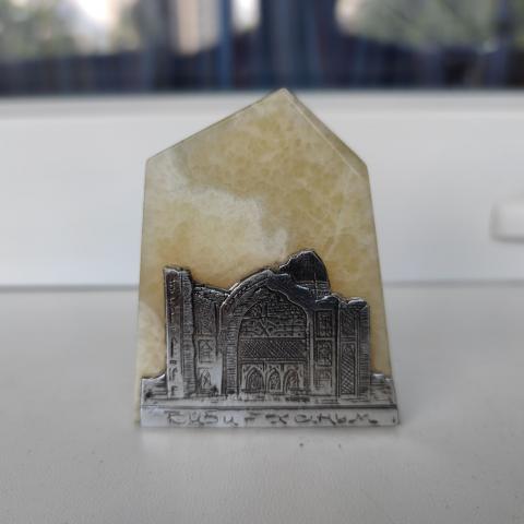 Tarybinis akmeninis onikso suvenyras su metalu iš vidurinės Azijos.
