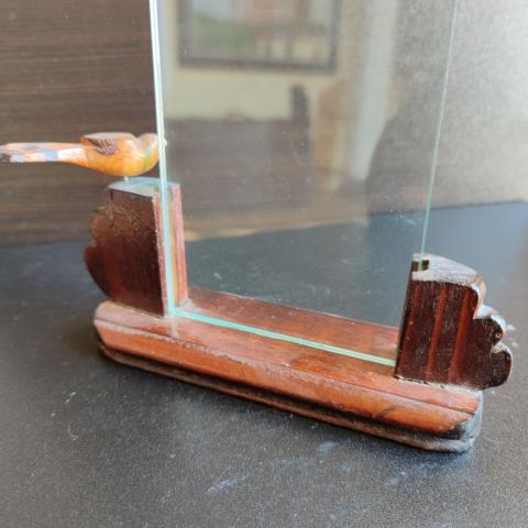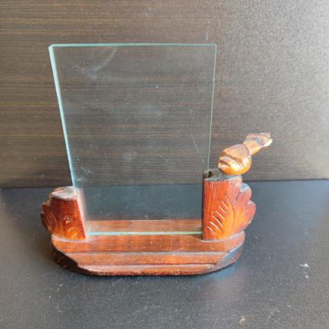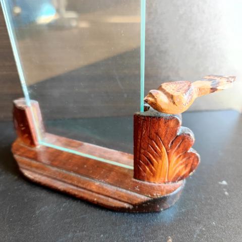 Tarybinis medinis nuotraukų rėmelis su stiklais su paukščiuku.
