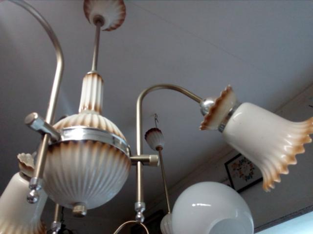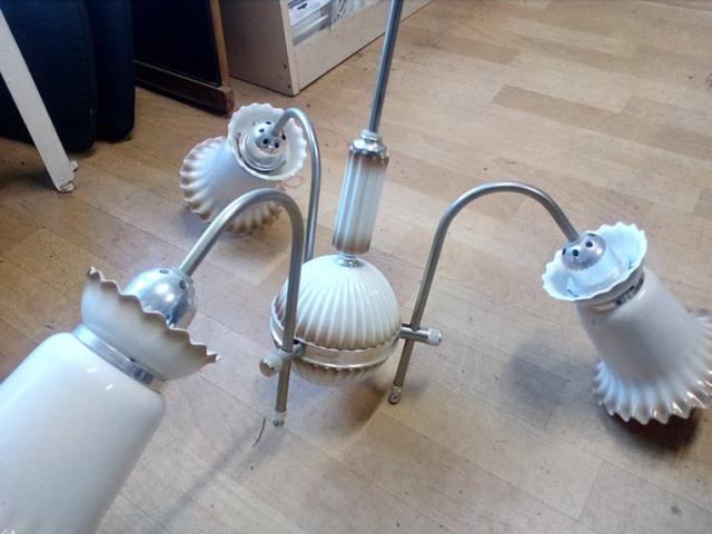 Tarybinis trijų lempų keramikinis šviestuvas.
