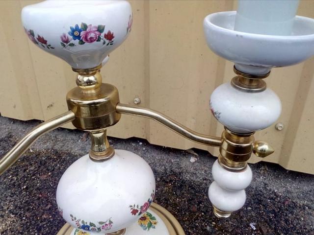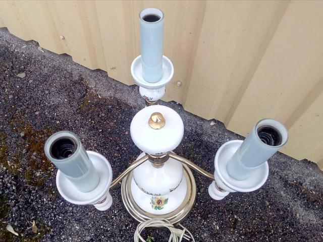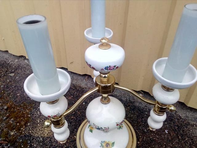 Tarybinis trijų lempų stalo šviestuvas su keramika.