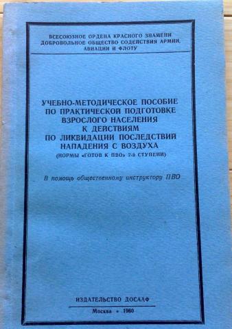 "Учебно-методическое пособие по практической подготовке взрослого населения к действиям по ликвидации последствий нападения с воздуха", 1960 metų leidimas, šaltojo karo laikus menanti knyga.