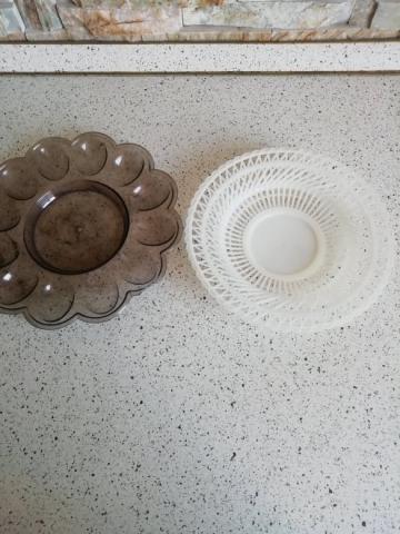 plastikinės,baltos skersmuo 21 cm, pilkos 23cm.