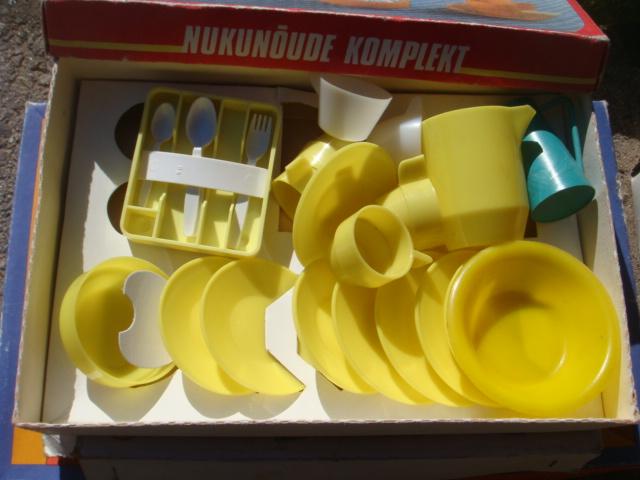 Tarybinių laikų vaikiškas plastmasinis indų rinkinys "Salvo",