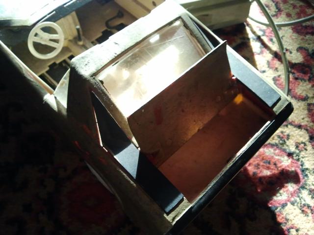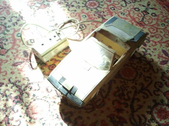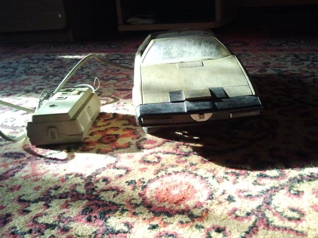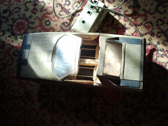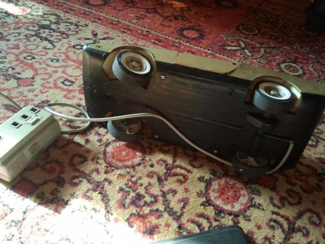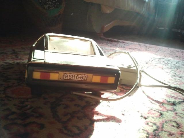 40-45metų senumo. Kažkada buvo varoma elektra, dabar neveikia. Išlūžusios vienos priekinės durelės, bet galima pritvirtinti su klijais ar kitaip. Dar turi prijungtą pultelį, kuriuo buvo valdoma, nežinau ar galima pataisyti, bet visos dalys yra vietoje. Spalva panaši į drumstą auksą arba šviesų varį. Dydis: ilgis - 36cm, aukštis - 6cm.