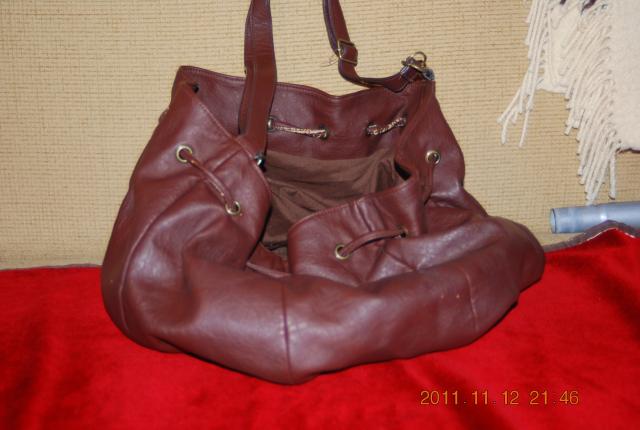 Puiki tase,dermantinine,tamsiai ruda,didele,viduje dvi uztraukiamos kiseneles taip vienas didelis uztraukimas sniureliais(kaip ir apsauga nuo lietaus,pamusalas)
