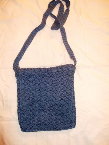 Mėlynas nertas tašiukas. Viduje pamušalas, yra kišenėlė. Nedidelis, 22/25cm. Rankena gan ilga.
