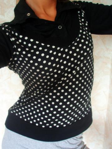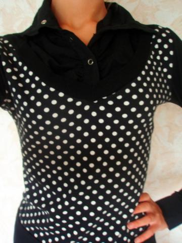 Taškuota palaidinė ilgomis rankovėmis. Defektas - iškrite keli kalnieriaus užsegimai.