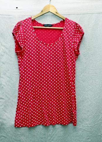 ryški rožinė su baltais taškučiais. prailginta, labai žavi ir patogi (: dydis m-l.