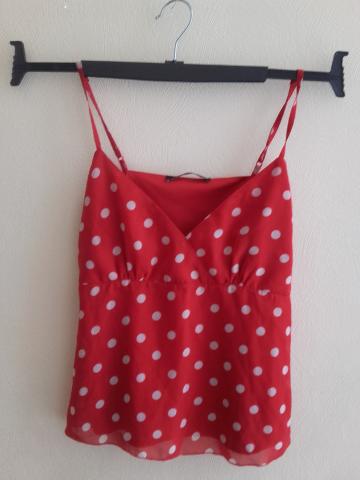 Vasariška, lengva, raudona taškuota palaidinukė.