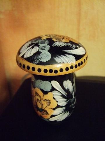 taupyklė - grybukas. medinis, viršus nusiima (taip gali išsiimti pinigus), viršuje yra pailga skylutė. =)