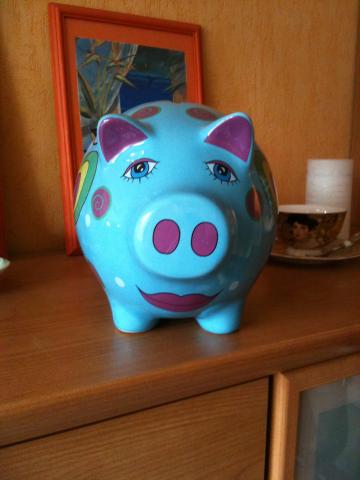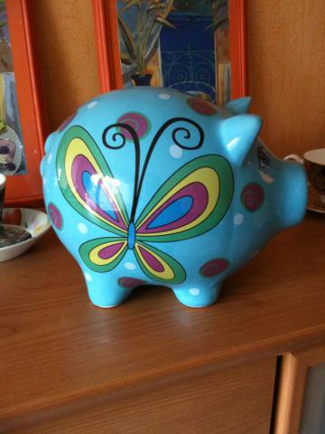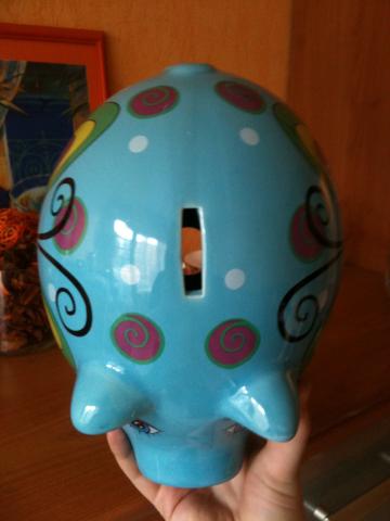 Smagi kiaulytė taupyklytė, didelė. :) Reiktų sutvarkyti kojas ir pritaisyti plastmasinį ar kokį kamštį, nes pamečiau :(