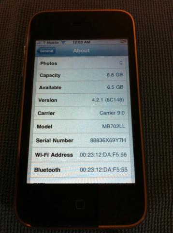 Viskas veikia 100% IOS versija: 4.2.1, modemas versija: 06.15.00 * Mulit užduočių atlikimas yra įjungtas * fonas fonas yra įjungtas Telefonas Būklė: Priekinis stiklas 10/10 nauja Galinio Būsto 10/10 nauja "Chrome" rėmelio 9.5/10 poliruoti Tomas mygtukas 10/10 Maitinimo mygtukas 10/10 Pradžia mygtukas 10/10 Vibrav Perjungti 10/10 Po Įranga buvo išbandyta: Patikrintas "T-Mobile ir ATT tinklų Gaunami ir išeinantis skambutis darbai Kamera veikia WiFi interneto prieigą darbai 3G interneto prieigo