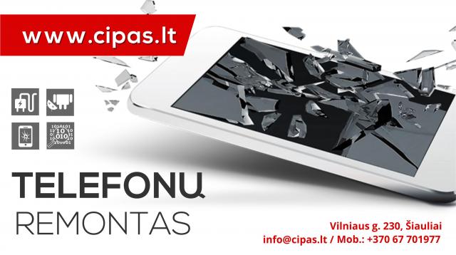 TELEFONŲ REMONTAS ŠIAULIUOSE / ekranų keitimas, lizdų litavimas PIGU / GREITAI / SU GARANTIJA! Keičiame, taisome, perrašome, atgaiviname įvairius telefonus, planšetus, greitai, kokybiškai ir patikimai. Atvykite pas mus: Vilniaus 230, Šiauliai arba Tilžes g. 107, Šiauliai (šalia PC “Saulės miestas“ ir lombardo). Atliekame šiuos remonto darbus: 1. Įvairių įrenginių diagnostika. 2. Ištrintų duomenų atstatymas. 3. *Užrakintų telefonų atrišimas. 4. Duomenų iškėlimas. 5. Operacinės sistemos perrašy