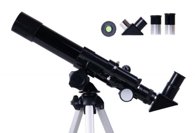 Pigus astronominis teleskopas - refraktorius 40/400 Lengvas ir mobilus teleskopas pradedantiesiems astronomijos mėgėjams, tinkantis tiek stebėti žvaigždes, Mėnulį, planetas tiek ir gamtą. Teleskopas surenkamas labai greitai ir lengvai. Prie teleskopo pridedamas taikiklis, padedantis lengvai nutaikyti jį į stebimą objektą, taip pat kompasas, padedantis orientuotis ir rasti norimą objektą. Pridedamas Mėnulio filtras padės išryškinti Mėnulio detales - kalnus, kraterius ir jūras. Dėl ypač mažos kainos pui