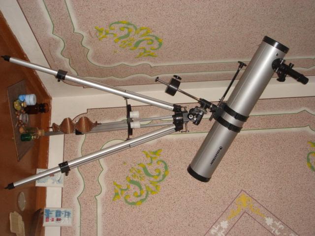 CELESTRON SKY reflektorius 114mm. ekvatorine montuote. Yra nemazai priedu. Skirtas giliam dangaus stebejimui, bet puikiai tinkamas ir planetoms.