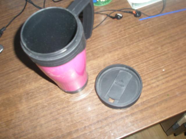 plastikinis termosas, rozines spalvos, nenaudotas.