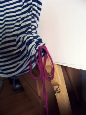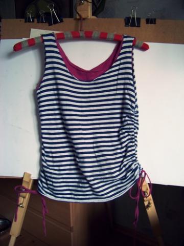 Dydis S. 100% medvilne, sonuose susitraukia sniureliais. Labai patogi, miela maikute :}