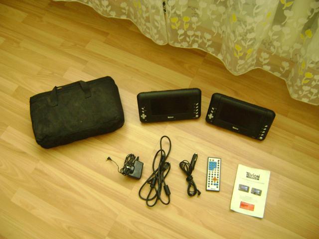 dveiju ekranu, 7coliu skaito cd-r, cd-rw, dwd, dwd-rw, mp3 yra usb, sd/mmc, av in, av out jungtys