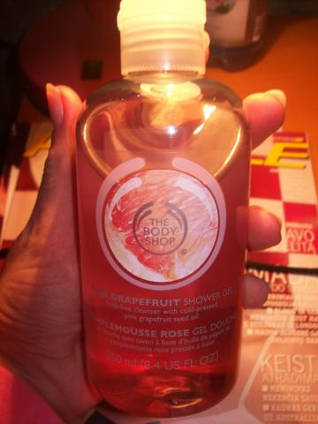 The Body Shop kvapni, bemuilė, drėkinamoji dušo želė su greipfrutų sėklų aliejumi ir ekologišku medumi. 250ml :) Nenaudota.