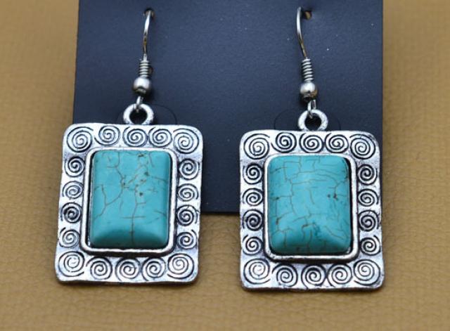 Nauji auskarai , Kaina- 29 + siuntimo islaidos ( galimas atsiemimas Kaune) Nemainau. · Pagaminta iš: Tibeto sidabro lydinys · Akmuo: Turkis · Dydis:2.7x1.06 cm