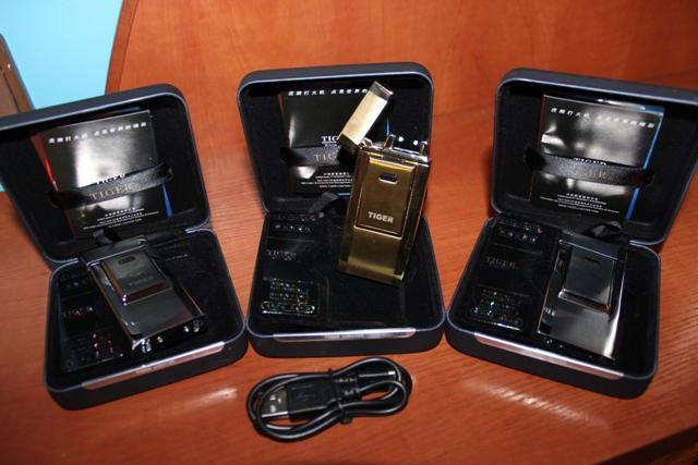 prabangūs žiebtuvėliai, užsidega nuo lietimo (auksinis), kiti užsidega nuo elektros iškrovos, pakraunami uSB laidu, yra 3 baterijos. Gražiose dėžutėse.