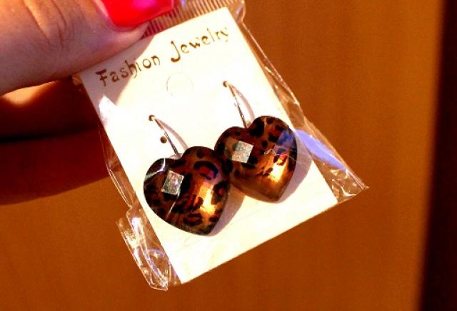 Visiškai nauji, tigro rašto bei širdelės formos auskariukai su užsegimais.