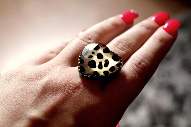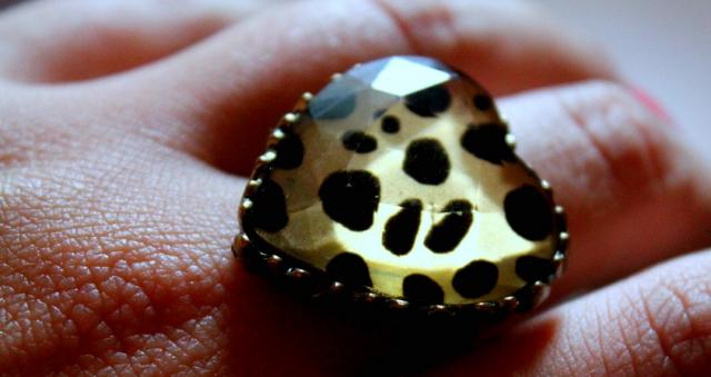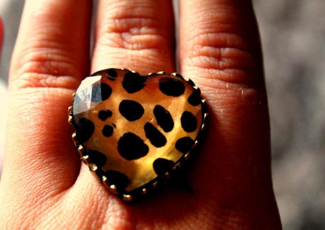 Naujas, tigrinis, širdies formos žiedukas. Dydis reguliuojamas, todėl tik bet kokiam pirštui.