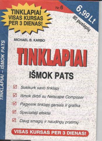 Išmok pats : Susikurk savo tinklalapį; Pagyvink tinklalapį garsais ir grafika; Specialieji efektai; Daug smagių ir naudingų pratimų; Visas kursas per 3 dienas!