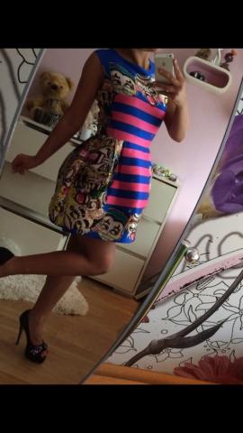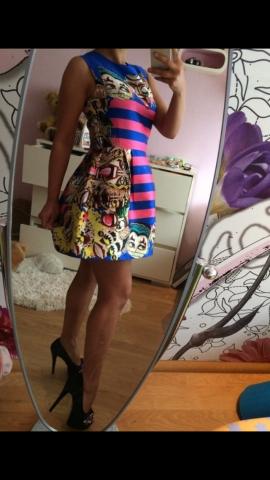 Labai geros kokybės, prabangi, puošni bei madinga suknelė. Medziaga yra slydi bei tvirta. Užtrauktukas iš nugaros pusės. PANELĖS, TIKRAI NELIKSITE NEPASTEBĖTOSšypsena))) Užsidėjau tik viena karta, todel galima sakyti, kad visiskai nauja! Parduodu, nes tapo man per didelė.. Tiks nuo S/M iki M.