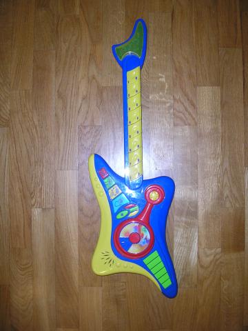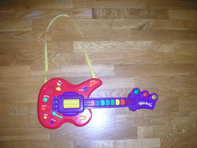 Tobula gitara daug funkciju, virsuje mirgsi, groja, labai daug ivairiu melodiju, yra jau irasytu melodiju, daug ritmu, ant kuriu galima papildomai prigroti, per viduri sukamas ratas-didzejaus mikso funkcija. Kaina 30euru Raudona pasikabinama gitara bukle gera, firma "Kidz beats" taip pat labai daug funkciju. Kaina 20euru.