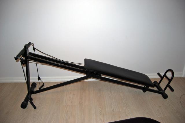 Parduodu naudota, bet labai geros bukles treniruokli. Treniruoklio principas yra darbas su savo svoriu. Treniruoklis kompaktiskai susilanksto (galima pakisti po lova). Siuo treniruokliu galima atlikti daugybe pratimu virsutinei kuno daliai - krutiniai, nugarai, peciams, trapecijoms, renkoms. Treniruoklio pakilimo kampas yra reguliuojamas, kuo auksciau keliate, tuo didesni svori tenka kelti. Treniruoklio ismatavimai - ilgis ~2m, plotis 0.5m, sulankstyto treniruoklio ilgis ~1m. Tel.