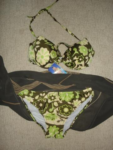 Gėlės - vasaros mada! kelnaičių dydis M/L , liemenėlė tiks 80 ( B-C) nešiojančioms. Liemenėlė kietinta. Naujas trijų dalių: priderintas šalis ant klubų, liemenėlė, kelnaitės +4lt reg.siuntimas