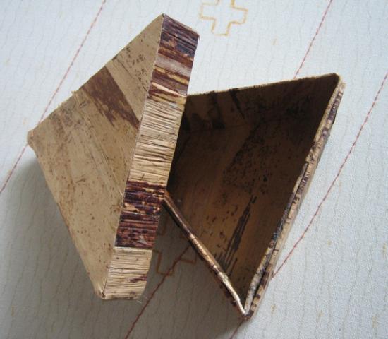 Trikampė dėžutė papuošalams ir pan. Apklijuota žieve :)