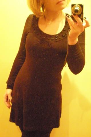 Ruda trikotazine suknele ilgom rankovem. Gale ivertas dirziukas. Negaleciau pasakyti kiek kartu ji buvo uzsideta, taciau bukle lyg naujos.